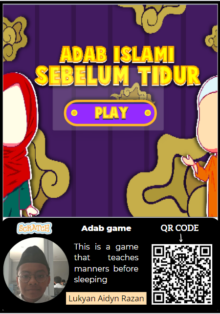 assalamualaikum warahmatullahi wabarakatuh here I will explain the adab game that I made. adab game is a good game for children because here they play while learning adab. here is an adab game that explains adab before going to bed. Maybe that’s the explanation about the adab game that I made. wassalamualaikum warahmatullahi wabarakatu.