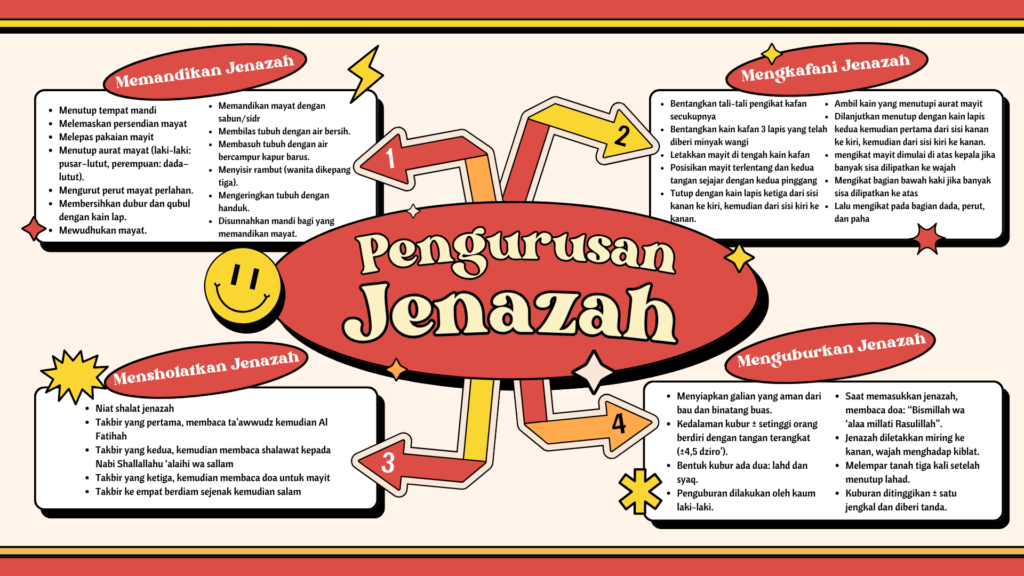 Assalamuallaikum Warahmatullahi Wabarakatuh so here I will explain my project this time which is Mind Mapping. So this time we were asked to make a Mind Map about the Management of the Corpse, such as Bathing the Corpse, Shrouding the Corpse, Praying for the Corpse and Burying the Corpse. Okay, maybe that’s all the explanation from me. Wassalamuallaikum Warahamatullahi Wabarakatuh.