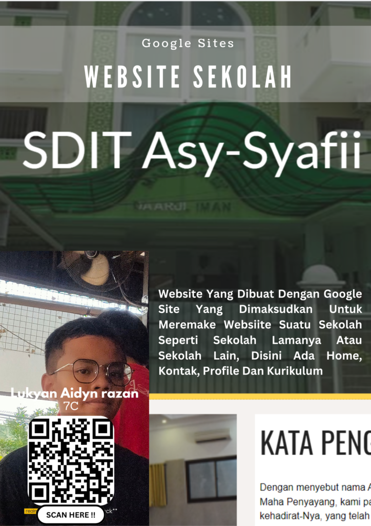 Assalamualaikum warahmatullahi wabarakatuh So here I will explain the website that I created called “School Website”. So I created this website using Google Sites, and this website only has four sections, namely “Home, Curriculum, Profile, Contact”. I created a school website called “SDIT Asy-Syafii” which is my primary school. Maybe that’s all I can explain. Wassalamualaikum Waramatullahi Wabarakatu
